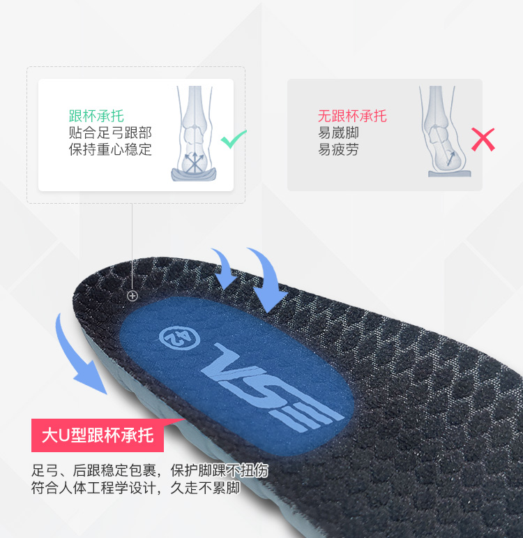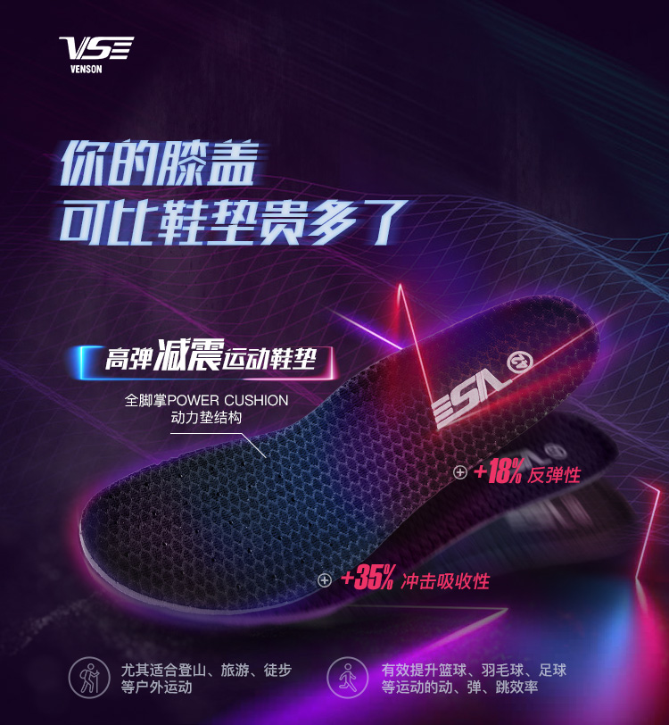 威臣(VS)高弹减震羽毛球鞋垫,鸡蛋2米落下不碎