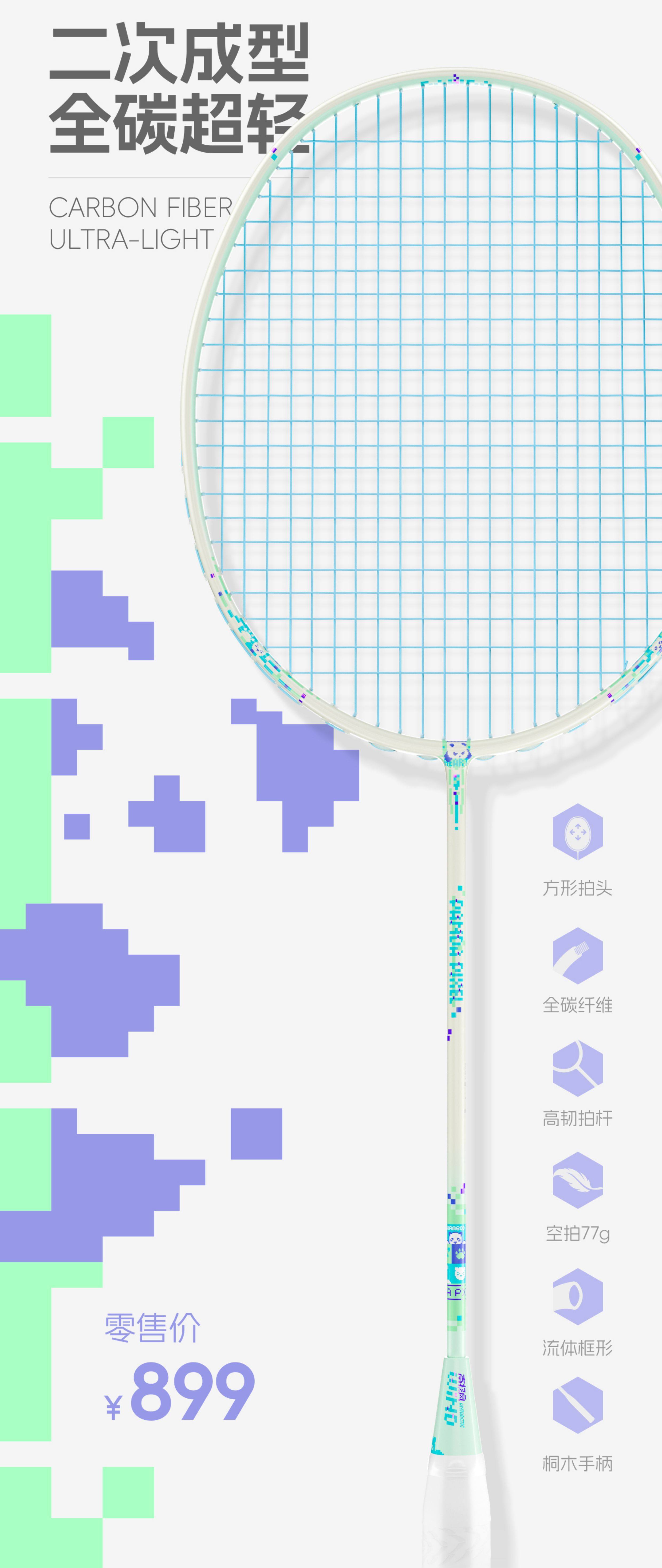 南极风 超轻5U全碳素 高颜值 二次成型 进阶型 羽毛球拍