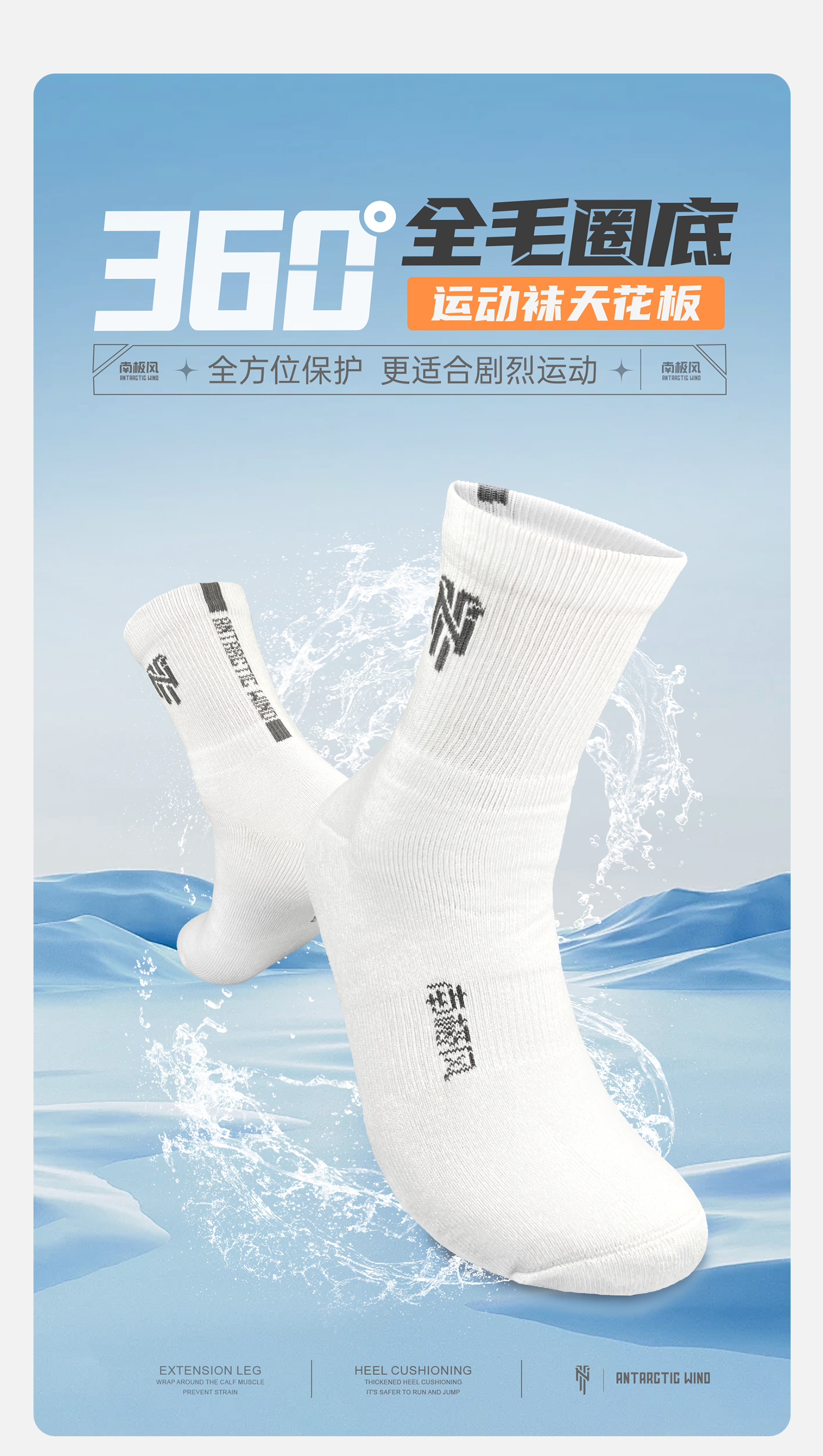南极风 小白袜 羽毛球运动袜 极简风